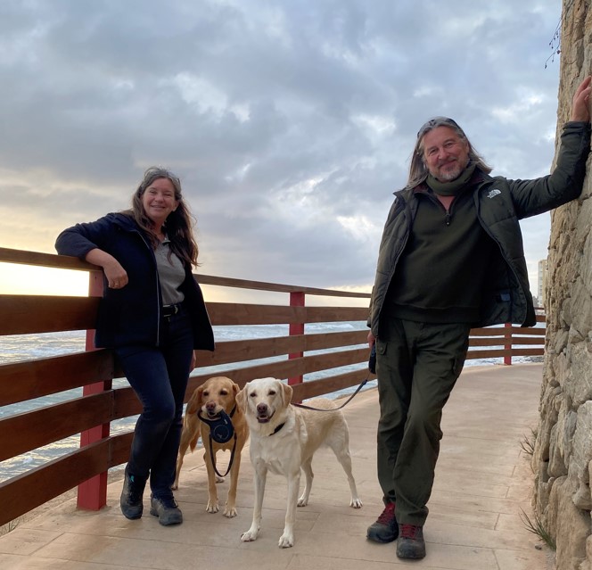 Untergekommen bin ich bei Monika, einer ehemaligen Arbeitskollegin, und ihrem Mann Daniel mit ihren zwei Labrador Retrievern Grace und Meghan. Ich wohne tagsüber ‚mit‘ in ihrem hübschen Appartment und schlafe auf dem sicheren Parkplatz in meinem Häuschen – die perfekte Mischung !