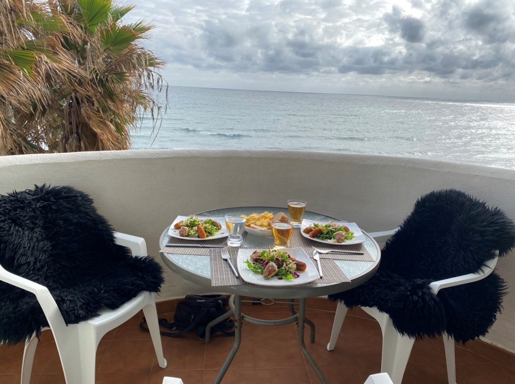 Von Hagemeiers Balkon ihrer ‘Überwinterungs-Mietwohnung’ im zweiten Stock reicht der Blick weit über das Meer – und an klaren Tagen bis nach Afrika !
