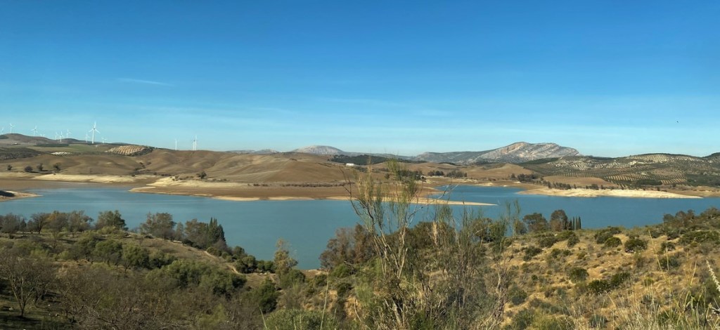 Monika und ich hatten uns den berühmten ‘Königspfad’ vorgenommen. Er ist gute 7 Kilometer lang und lässt sich gemütlich erwandern in ein paar Stunden. Schon die Anfahrt nach Ardales zum Start bietet einiges an schönen Ansichten.