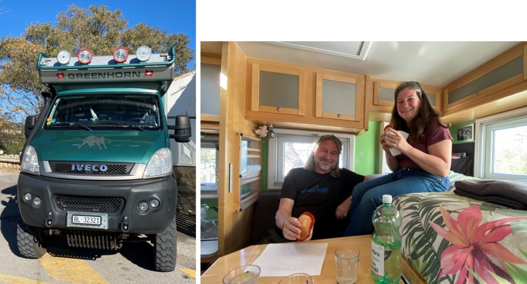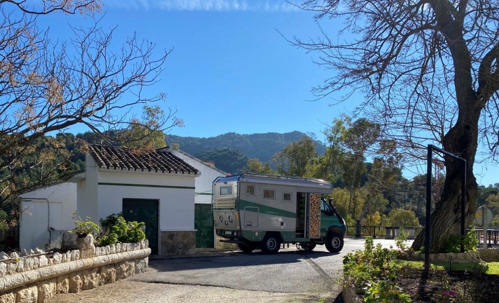 Ankunft in Ardales: das ist Hagemeiers Iveco 4×4 ‘Greenhorn’, mit welchem Monika und Daniel unterwegs sind, wenn sie nicht gerade eine Wohnung am Meer gemietet haben. Mit so einem Fahrzeug kommt man auch dort hin, wo mein Fiat längst weiche Knie bekommt oder hängen bleibt mit dem bodennahen Bauch..