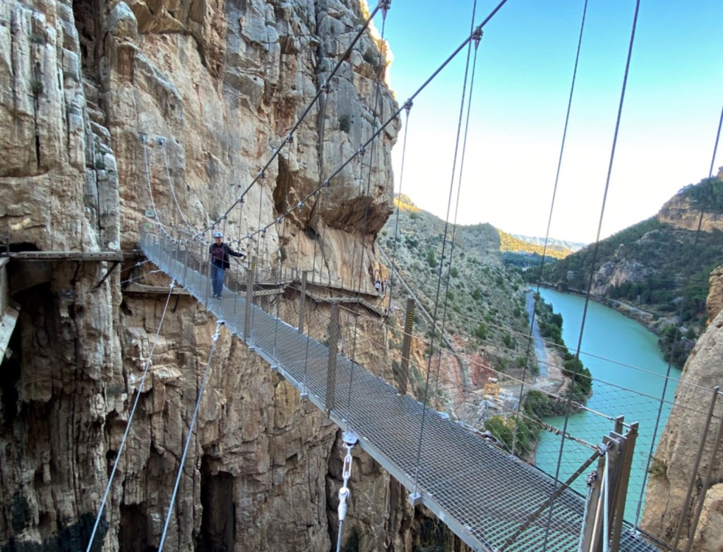 Nach Jahren der Totalsperrung wurde 2015 der neue, sichere Camino del Rey eröffnet. Seine Begehung ist nun ein Kinderspiel, aber es ist auch jetzt noch eindrücklich, entlang der steilen Wände zu spazieren, sich an grossartigen Ausblicken zu erfreuen und die federnde Hängebrücke über dem stiebenden Wasserfall zu überqueren.
