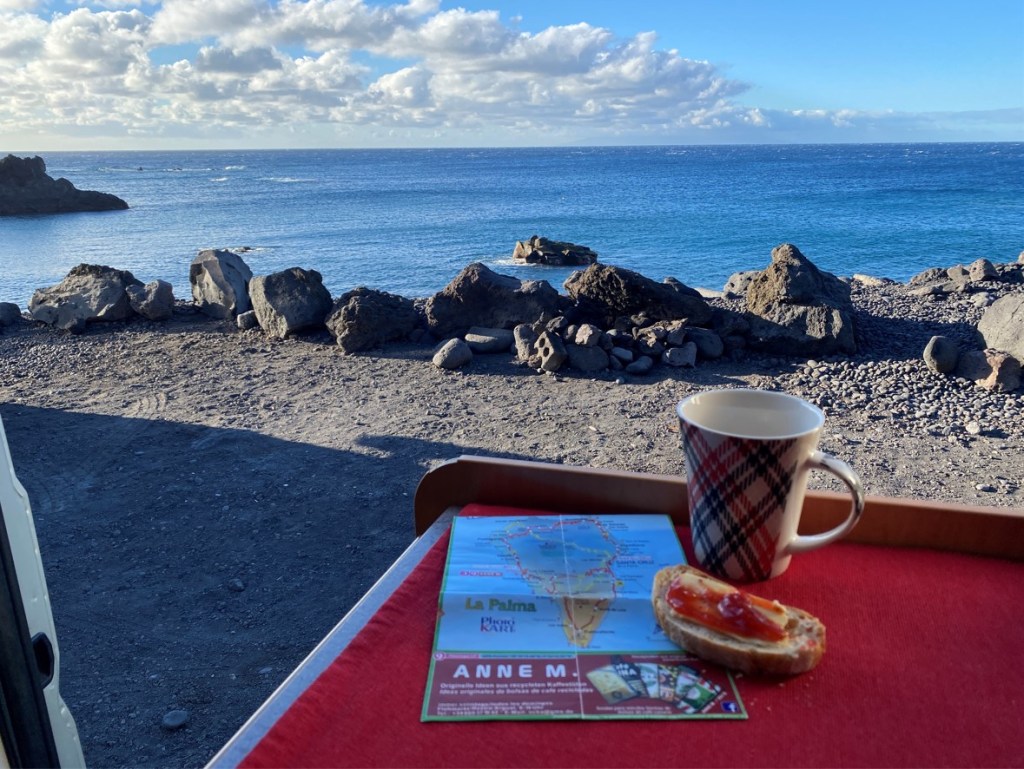 Frühstück in Fuencaliente. Mit Ausblick zum Neidisch-Werden, nicht wahr ?