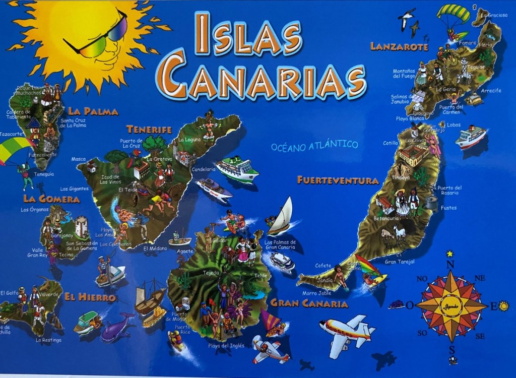 Wenn an der Wand rechts nicht die kanarische Inselgruppe abgebildet wäre, könnte man sich in Griechenland wähnen bei diesen Farben