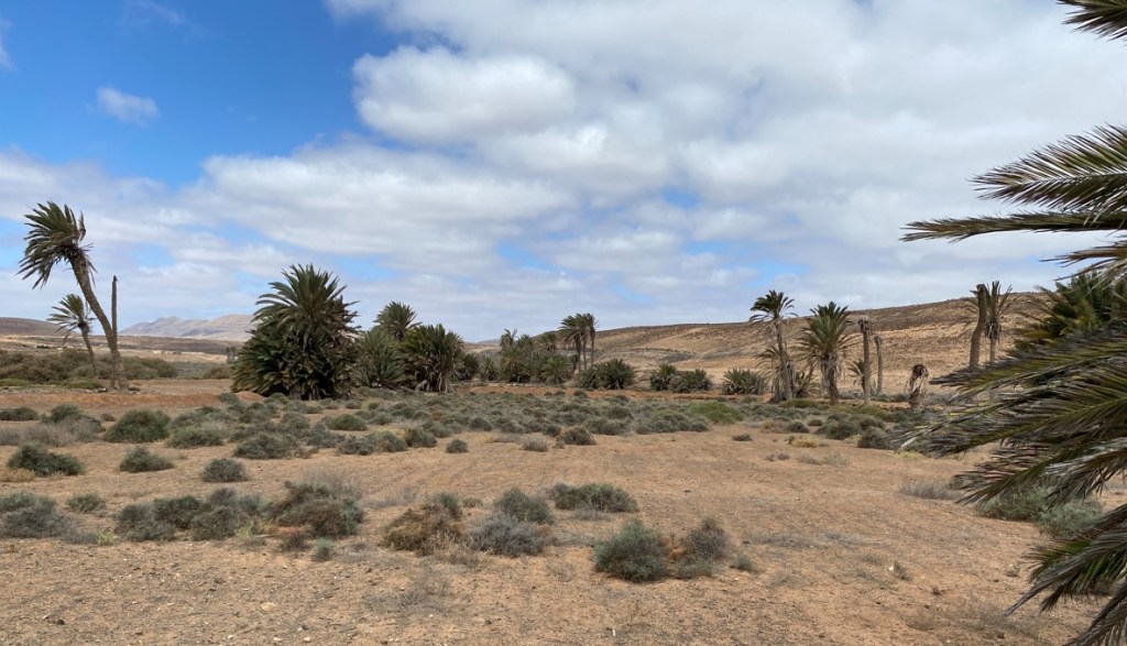 Sobald man aus den Städtchen fährt, ist man urplötzlich wieder in dieser Landschaft in schwarz-braun-beige, wo ein Haus oder ein paar Palmen an einem etwas länger feuchten Flussbett wirken wie eine Oase in der Wüste.