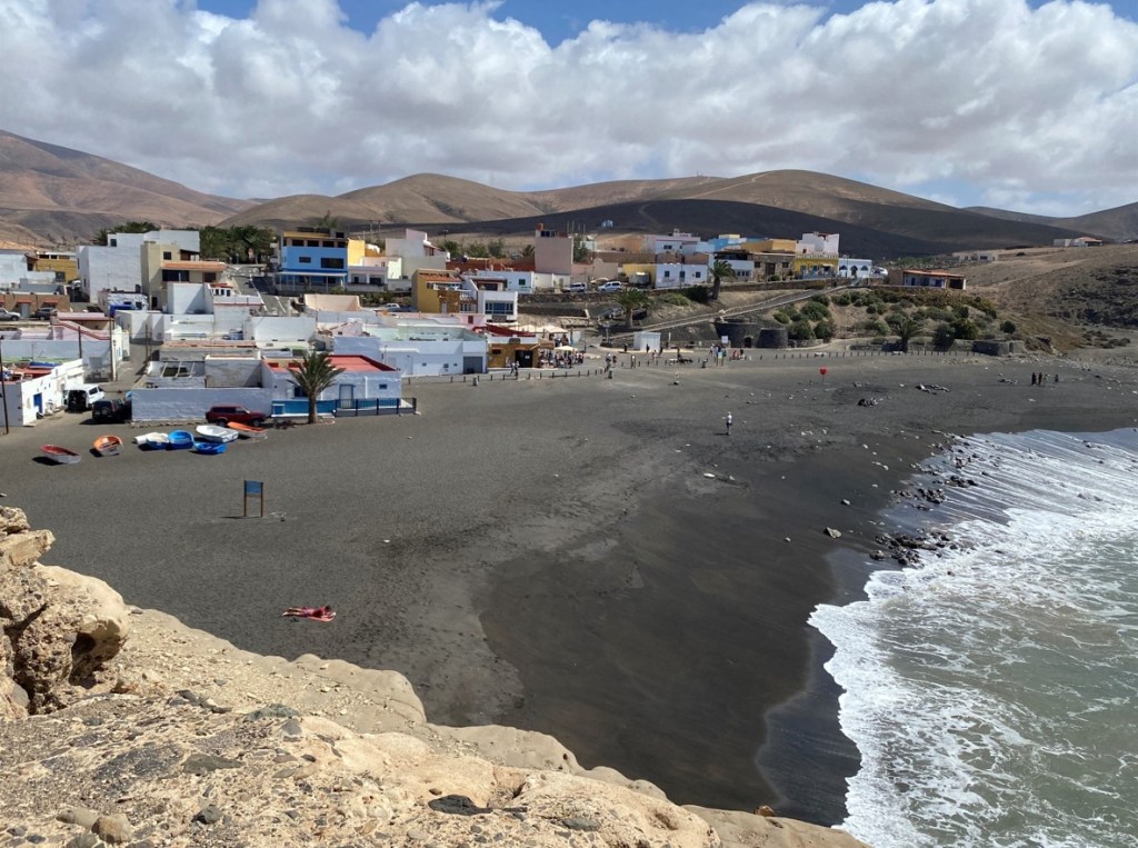 Auf der Suche nach einem Stellplatz für die Nacht kam ich schliesslich an der Playa Blanca an (im Hintergrund Puerto del Rosario, die Hauptstadt von Fuerteventura, wo auch der grosse Hafen liegt.
