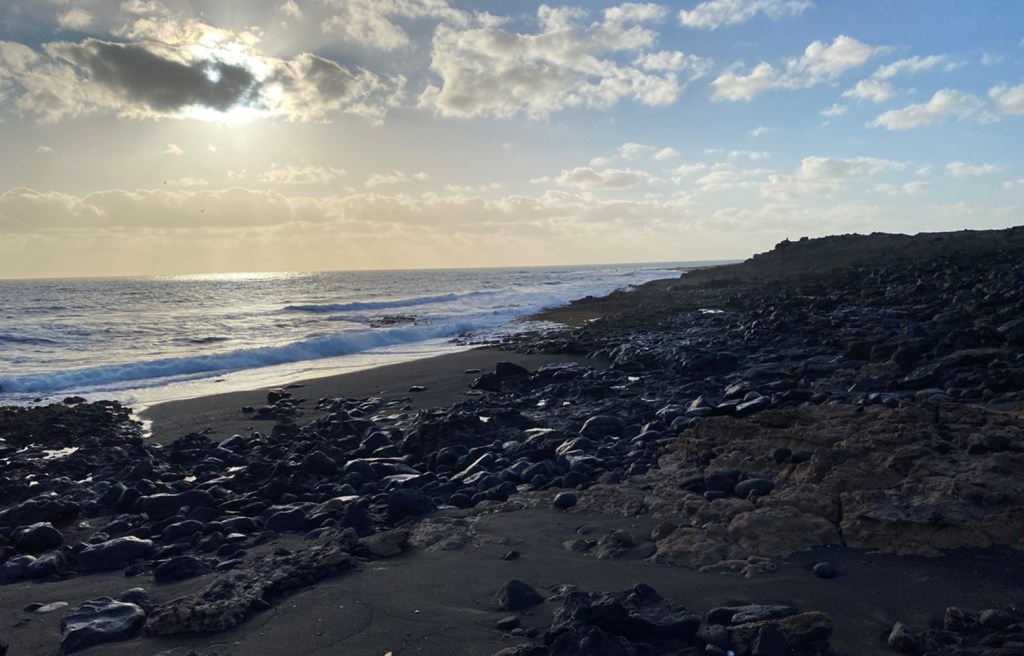 Der strahlend weisse Belag, durchsetzt mit schwarzen Vulkansteinen, erinnert tatsächlich an Puffmais. Er besteht aus ausgebleichten und von der Brandung glatt geschliffenen Kalkstrukturen, welche einst von roten Algen produziert worden waren – also eigentlich Stücke eines Korallenriffs.