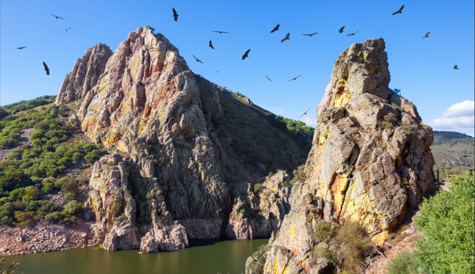 Aus den Wolken tauchte überraschend dieser Berg vor mir auf. Was ich dannzumal noch nicht wusste: ich war im Nationalpark Monfragüe bei Plasencia angekommen, und diese Schlucht heisst ‘El Salto del Gitano’.