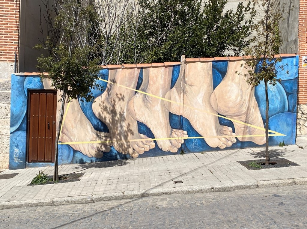 Eine nette Tradition: jede Stadt und praktisch jedes Dorf hat eine ‘Plaza Mayor’ (hier inklusive Gemeindehaus samt Uhrtürmchen), in deren Innenhof es wimmelt von kleinen Restaurants und Bars. Weniger nett ist die Tatsache, dass das Geschäft in den Läden und Restaurants super läuft bis etwa 14 Uhr, dann ist plötzlich alles leer und geschlossen bis mindestens 17.00h. Und das ist oft genau dann, wenn ich unterwegs bin, weil es etwas wärmer ist – und ich Zeit hätte…