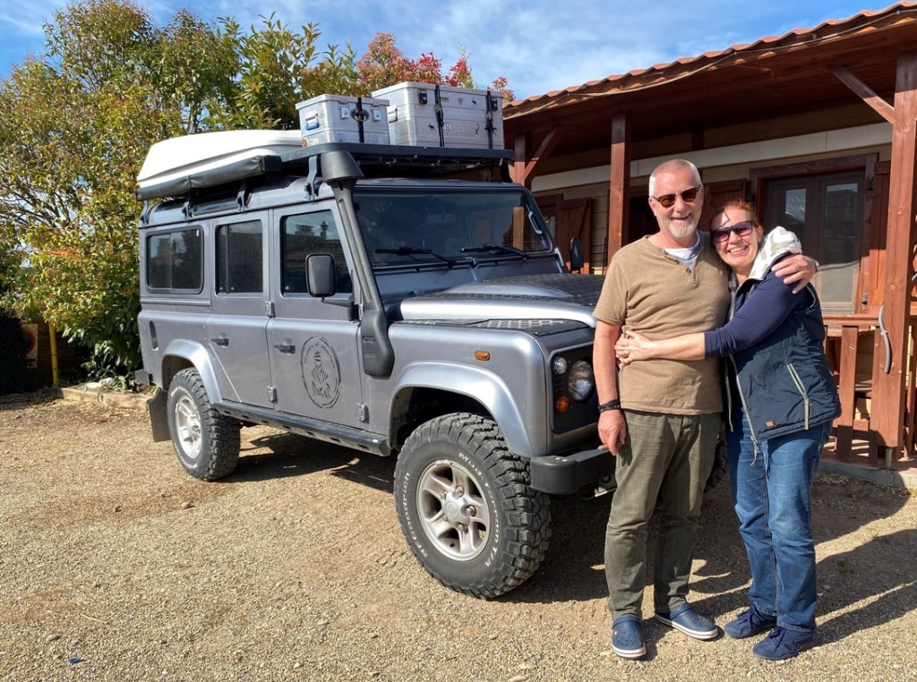 Villafranca bei Saragossa. Hier habe ich am 12. April Barbara und Hans mit ihrem Expeditionsmobil getroffen. Sie kamen gerade zurück von ihrer abenteuerlichen Fahrt durch die Wüste ‘Bardenas Reales’ in der Provinz Navarra, wo sie sich mit Begeisterung von der Strasse weg in die unwegsameren Gebiete gewagt hatten mit ihrem Land Rover.