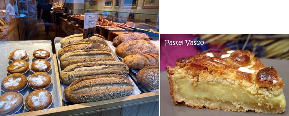 Hier heisst die lokale Gebäck-Spezialität ‘Pastel Vasco’ (ganz links). Ich habe natürlich gleich ein Küchlein gekostet. Der buttrige Rührteig war richtig gut, aber die Creme darin eine von der Sorte, die im Falle eines Falles Wurfes glatt an der Wand kleben bleiben würde. Die Pasteis de Nata aus Portugal bleiben vorläufig unangefochtene Auslandgebäck-Sieger.