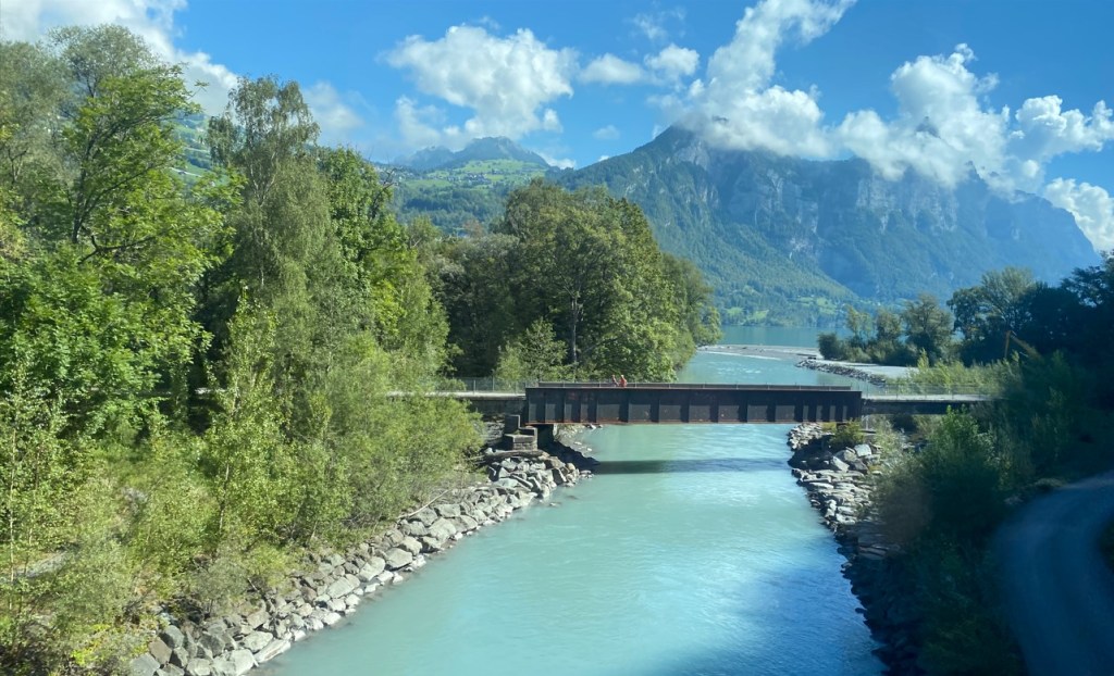 Am ersten Morgen ging es zeitig los mit dem Postauto, dann mit der SBB. Begleitet von Traumwetter und weissen Wölkchen fuhren wir durch die Schweiz, die uns in buntesten Bildern präsentiert wurde. Meine Güte, wie ist unser Land schön !