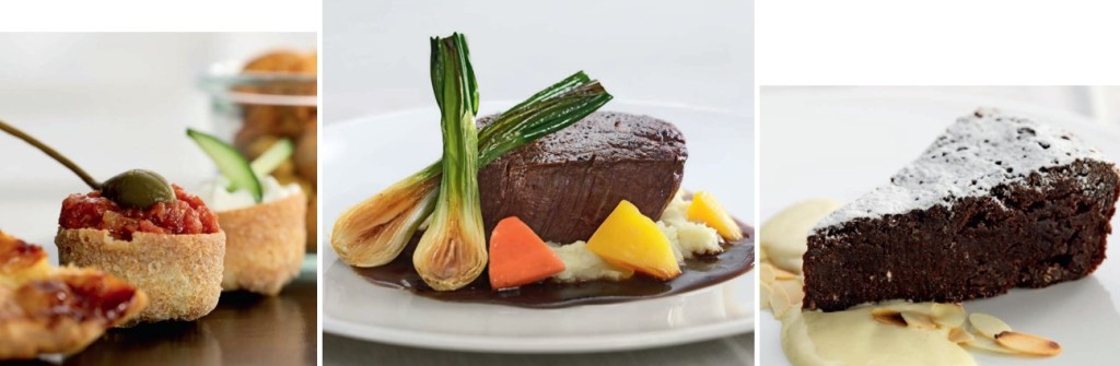 Wir arbeiteten uns im Stundentakt und mit Gusto durch köstliche Apérohäppchen, geräuchte Forellenfilets auf Randen, eine Erbsen-Minze-Suppe, ein perfekt rosa gebratenes Rindsfiletsteak mit Trüffelstampf, eine Käseplatte, Schokoladetorte und Friandises… Himmlisch !