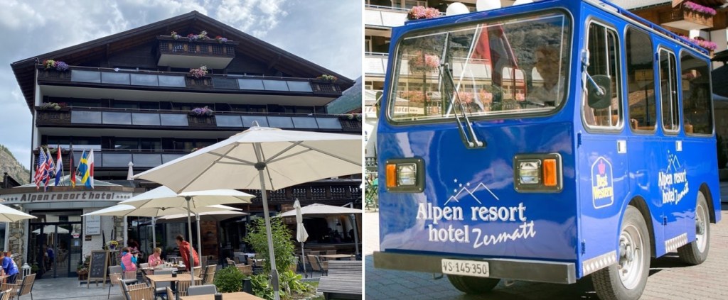 Zermatt ist sehr sympathisch. Währenddem St. Moritz eher dem eleganten Jetset gehört und seine Gäste gerne im Rolls Royce vom Bahnhof zum Hotel um die Ecke gefahren werden, kurven im autofreien Zermatt lauter solche Legoklötzchen-Taxis durch die Strassen und unterscheiden sich lediglich durch die Aufschrift voneinander.