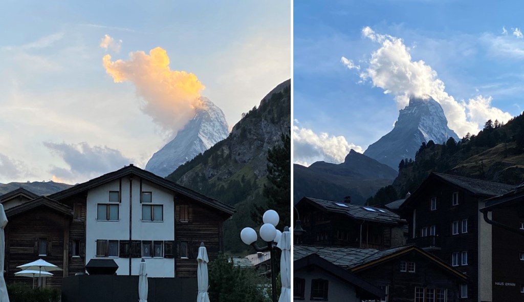 Als wir am nächsten Mittag aus Zermatt abreisten, war das Matterhorn in dichte Wolken gepackt, und vom Hotel aus konnten wir es gar nicht mehr ausmachen. Da wurde uns erst so richtig bewusst, was wir doch für ein Glück mit dem Wetter gehabt hatten.