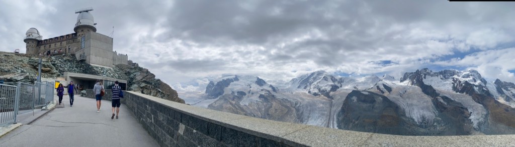 Es heisst, dass man vom gut 3000 Meter hohen Gornergrat aus glatte 29 Viertausender sehen kann. Ich habe sie nicht gezählt, aber die Rundumsicht von dort oben ist überwältigend ! Mächtige Bergspitzen, Schnee und Gletscher, soweit das Auge reicht.