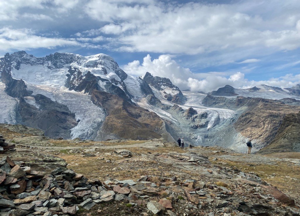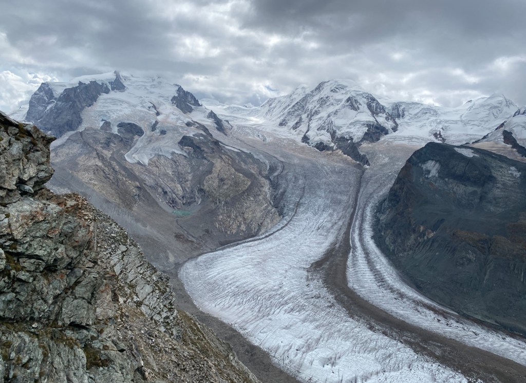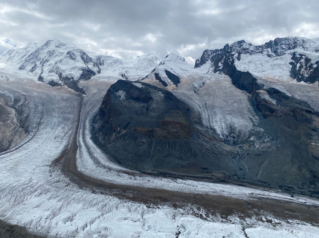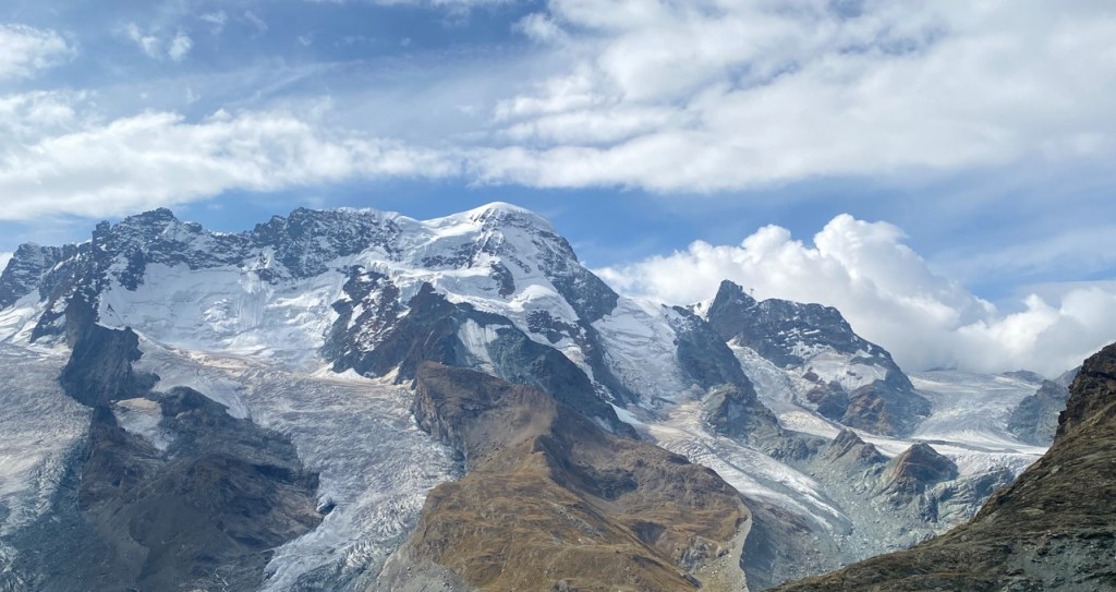 Hier oben im Monte Rosa Massiv vereinigen sich Gornergletscher und Grenzgletscher, und die Bergspitzenansicht liest sich zuweilen wie ein ‘Who is Who’ der illustren Kuppen.