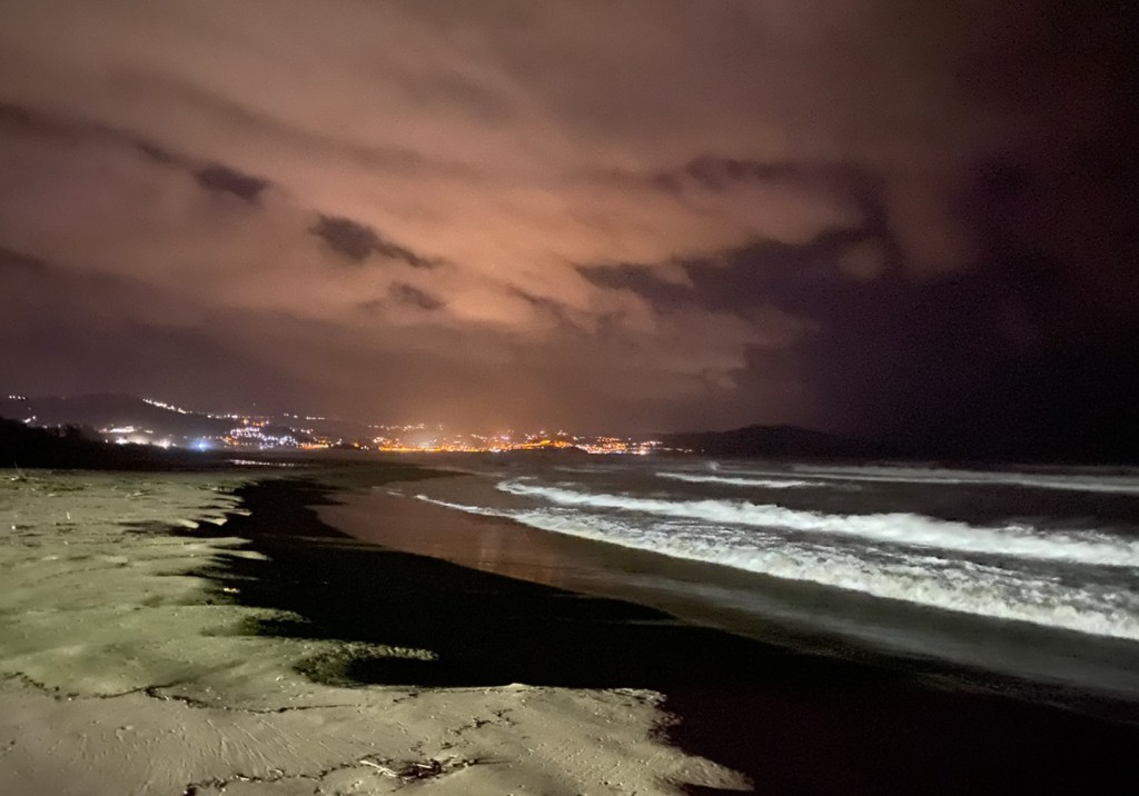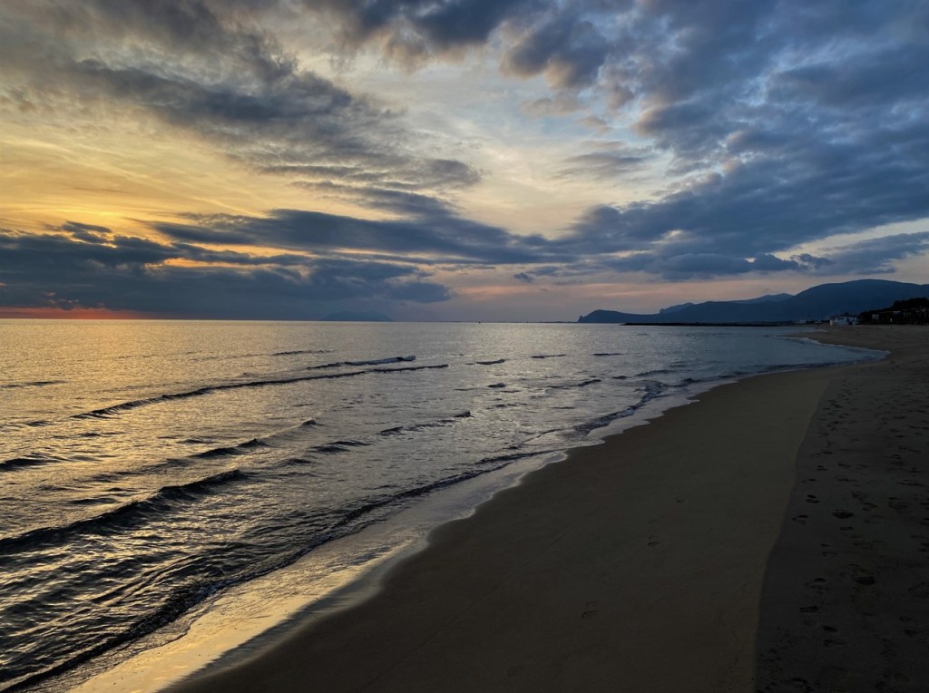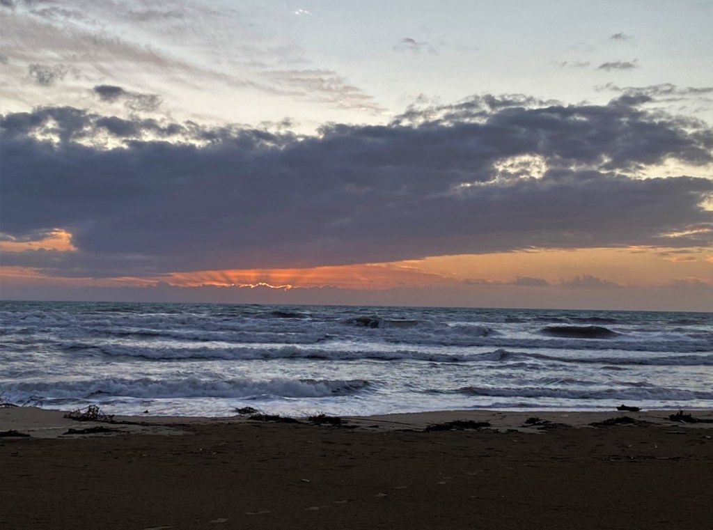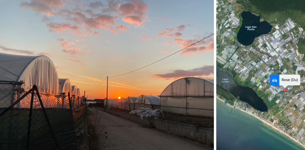 Der schöne Sonnenuntergang macht die Tatsache nicht wett, dass auch diese Gegend vom Treibhausvirus infiziert worden ist, wie man gut erkennen kann auf dem Standort-Bild rechts. Schade. Immerhin ist der Strand schön – und das Städtchen auf dem Hügel nachgerade bilderbuchwürdig.