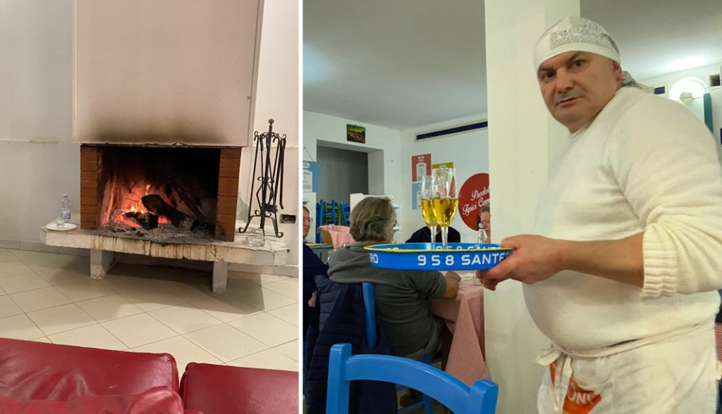 Das Restaurant hat erfreulicherweise offen, und drinnen brennt immer ein behagliches Cheminée-Feuer.