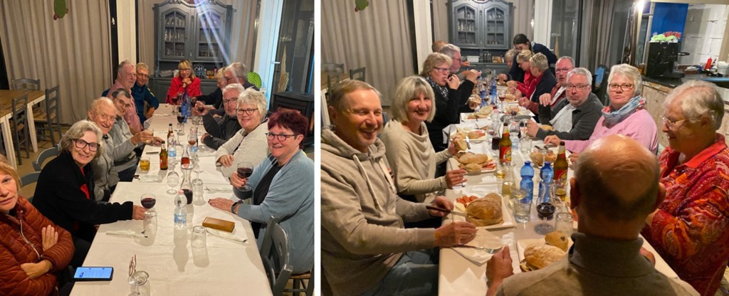 Jeden Samstag kocht auch hier die Nonna ein fixes Menu für die Camper im ansonsten für den Winter geschlossenen Restaurant. Manchmal gibt’s zuerst ein Tellerchen mit Pommes und Kartoffelkroketten (also Pommes mit Gemüse…), gefolgt von feiner Pizza. Dazu gibt’s immer einen Viertelliter guten Hauswein und ein Wasser – 15 Euro. Da versteht man plötzlich, warum so viele sagen, es wäre zwar sehr schön bei uns in der Schweiz – aber (dio mio !) teuer. Was müsst ihr alle reich sein !