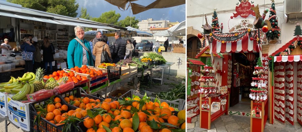 Downtown Gallipoli. Camper-Nachbarin Ellen und ich auf der Suche nach dem Mittwoch-‘Mercato’. Bis wir ihn fanden, waren die ersten Standverkäufer bereits am Einpacken ihrer Ware. Macht nichts, es gab noch genug andere, und eigentlich brauchten wir ja auch nichts.
