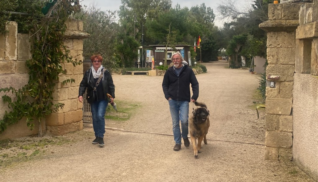 Karin hatte ich gerade noch in Paestum kennengelernt am Tag ihrer Abreiset. Sie fährt mit einer SG-Autonummer und spricht Zürichdeutsch; bei mir ist es genau umgekehrt – das verbindet ! 😊 Ihr kleiner Pinscher-Mischling ‘Fina’ lebte einst auf einer Abfallhalde hier in der Gegend und ist schlicht zum Verlieben schnusig. Sie bellt nie, ist super erzogen und hat keine Angst davor, auch grosse Hunde anzusteuern zum Kennenzulernen. Wenn sie sich zum Schlafen zusammenrollt, ist sie kaum grösser als eine Katze.