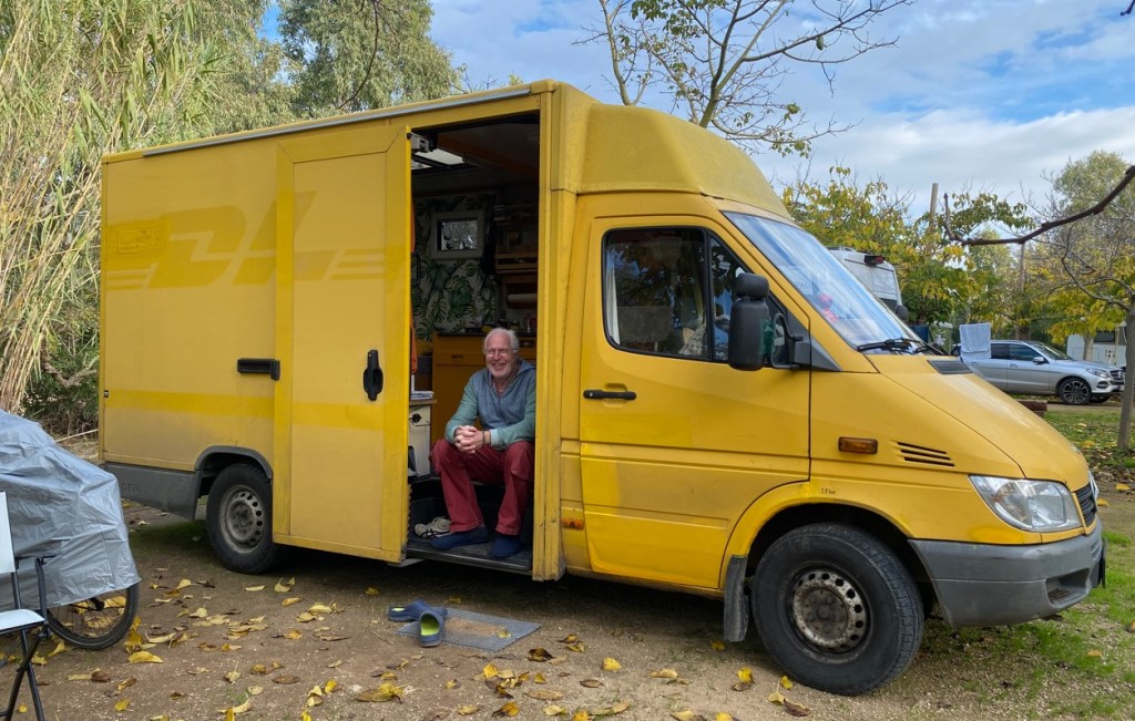 Reiner ist mit einem selbst ausgebauten DHL-Mercedes unterwegs und wohnte neben mir.