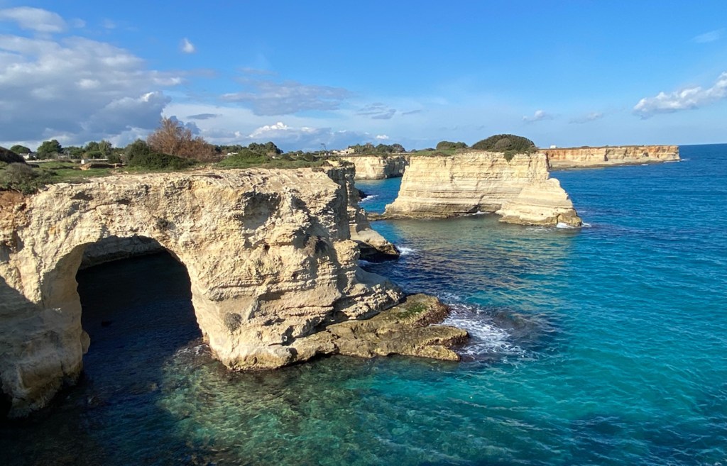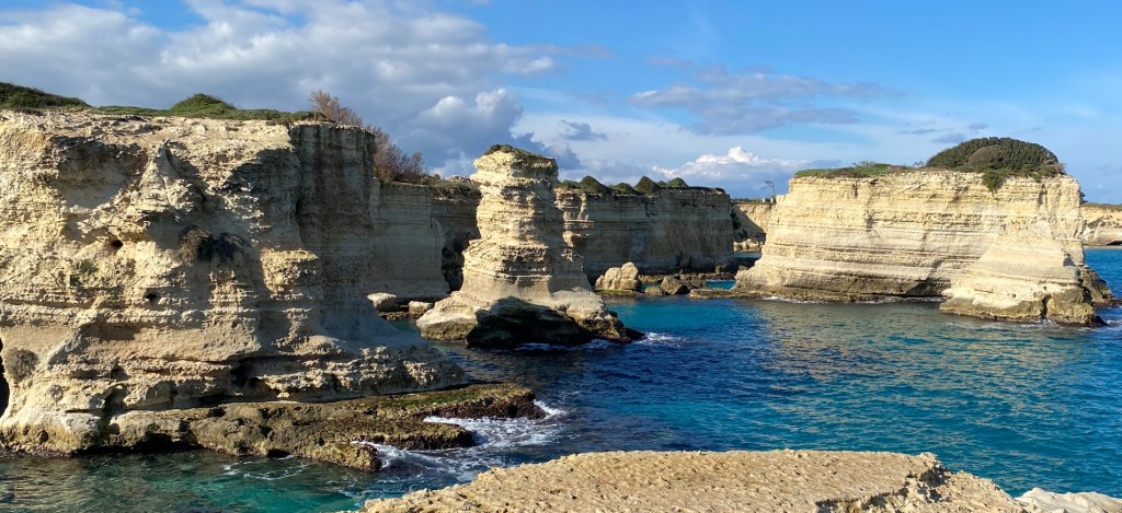 Erster Halt in Torre di Sant’Andrea: die Sandsteinklippen dort sind sehr reizvoll, und im Sommer soll das Baden hier ein Genuss sein