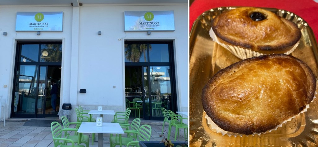 Gleich neben der Bar: ein Martinucci in Otranto ! Hurra, DIE Pasticceria ! Ich habe mir gleich ein paar Pasticciotti gekauft und heisse die klassische Variante mit Vanillecreme herzlich willkommen im ehrenwerten Kreis der delikatesten Süssigkeiten Europas, direkt bei den Pasteis de Nata aus Portugal und den Äpfel-Armagnac-Croustades aus Frankreich !