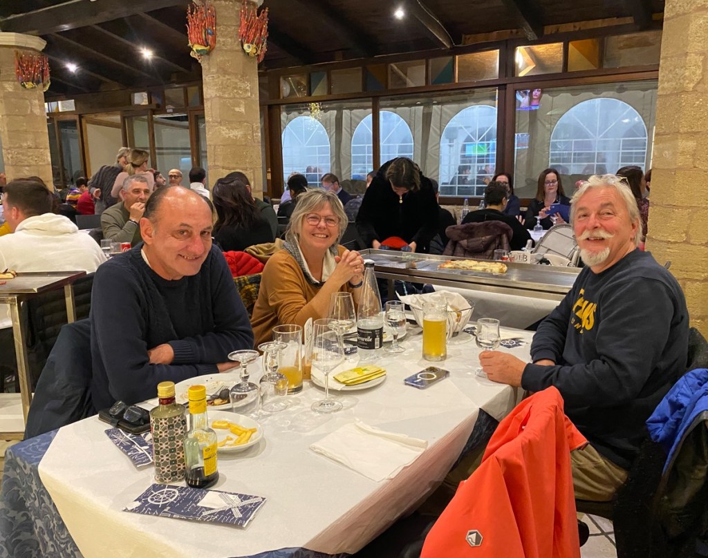 An Heiligabend überliess uns die Camping-Chefin Simona das mit dem Holzofen vorgeheizte Restaurant, und wir teilten uns einen lustigen Apéro mit den von allen mitgebrachten Snacks und Getränken.