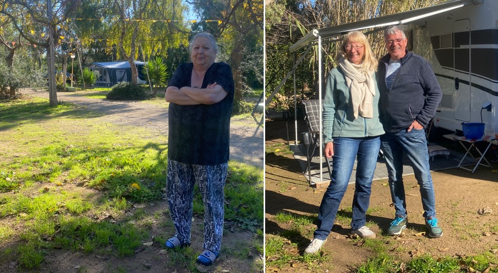Michael (links) ist mit einem richtig grossen Wohnmobil, einem Motorrad und seinem Hund Anak unterwegs, die charmanten Wiener Gaby und Willi reisen mit einer jungen Leonberger-Hündin im grossen Wohnwagen.