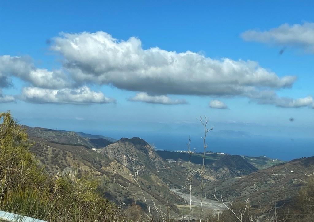 Hier ging es vom ‘Rudi’-Hügel hinunter nach Reggio di Calabria und Villa San Giovanni, von wo aus die Fähre dort hinüber fährt. Sizilien.