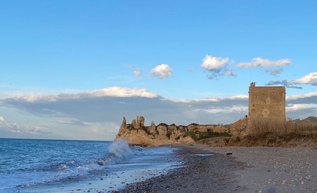 ‘Unser’ Wahrzeichen am Strand von Roccellamare gleich auf der anderen Strassenseite. Auch diese Ruine ist eine Verteidigungsanlage aus dem 12. Jahrhundert, und auch sie wird langsam vom Meer abgetragen.