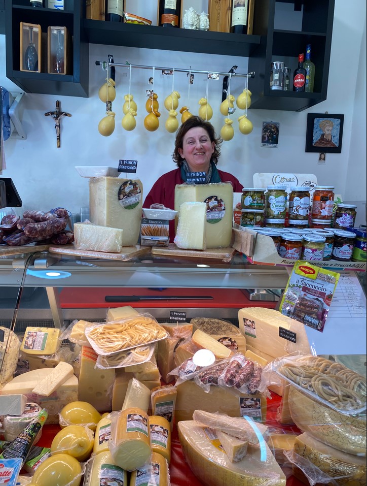 Diese freundliche Laden-Inhaberin hat mir hausgemachte Teigwaren, geräuchten Mozzarella und Würste aller Art angeboten.