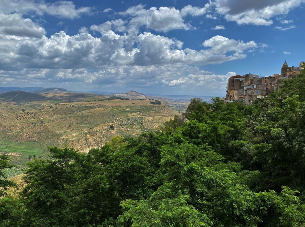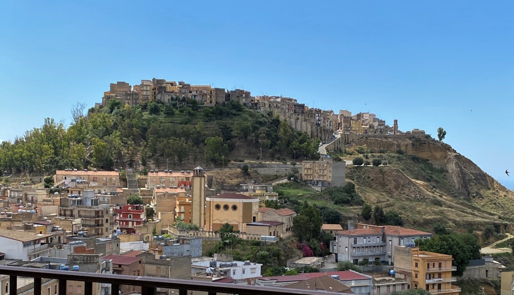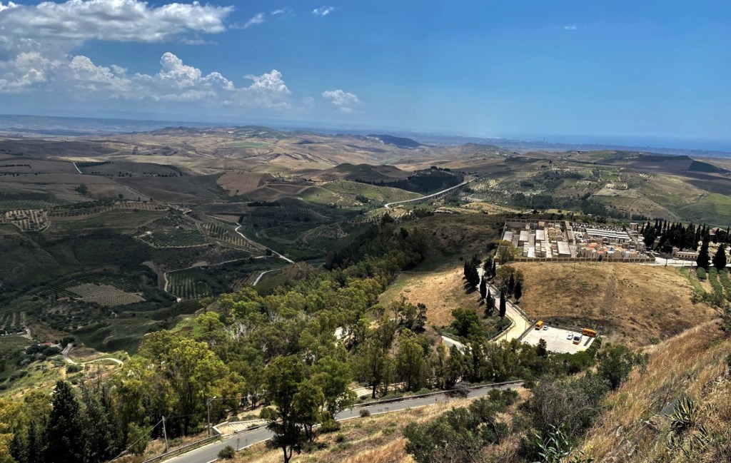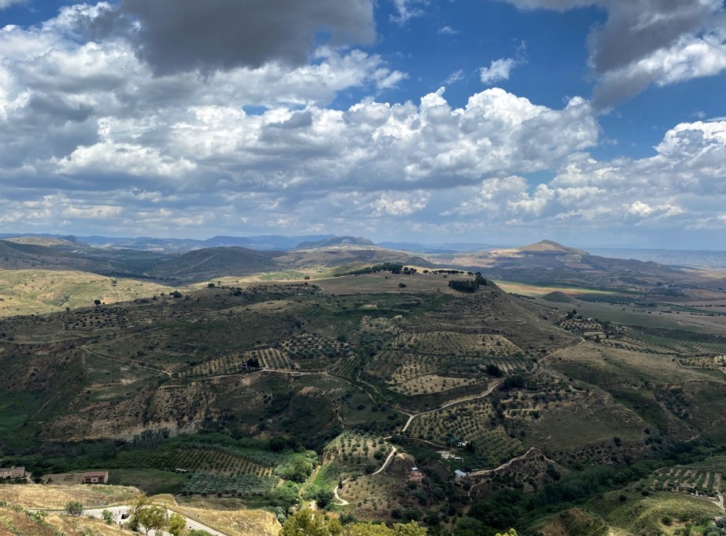 Das Dorf Butera (Siris Hostel liegt auf dessen Gemeindegebiet) liegt im Bild rechts oben auf dem Hügel.