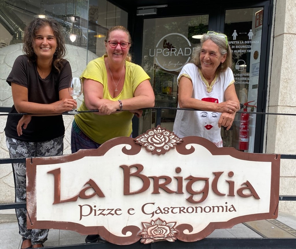 Abschiedsessen in der Pizzeria La Briglia von Licata mit Siri (Mitte) und Ingrid, unserer Gartenspezialistin.