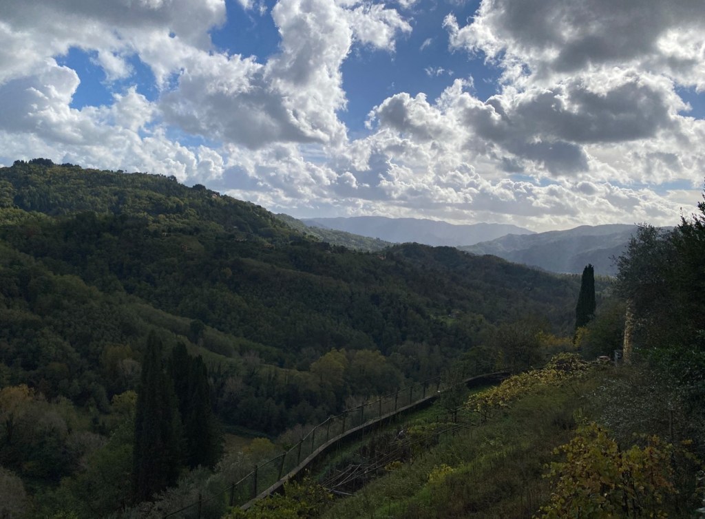 Als ich gestern hier ankam, war das Sturmtief Ciarán eben erst über die Toscana gezogen; der Fluss Serchio sprudelte wild und hoch unter der alten Steinbrücke hindurch; von den Hängen herunter flossen Bäche von Wasser über die Strassen, und an den Strassenrändern lagen beiseite geschaffte, entwurzelte Bäume. Aber der Rest sah genau so aus, wie man sich die Toscana vorstellt: Zypressenalleen an Hofeinfahrten, weite Felder, ausladende Pinien, Olivenbäume..