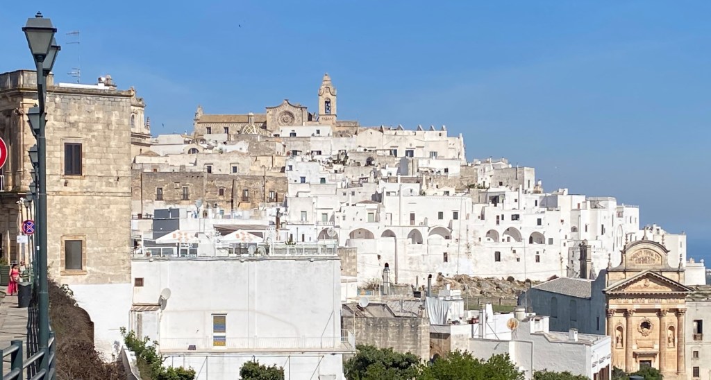 11.4.2024 Weisse Dörfer wie die ‘Pueblos Blancos’ von Andalusien gibt es auch in Italien. Hier heissen sie dann ‘Città Bianche’. Ostuni ist eine davon.