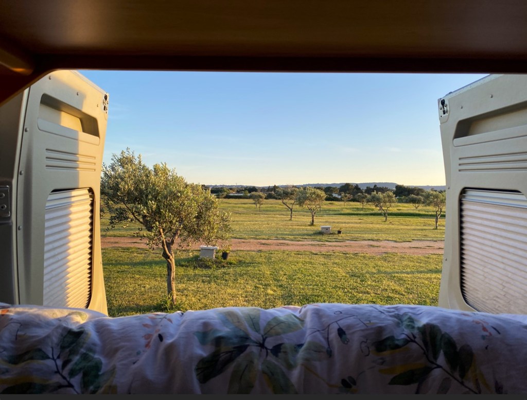 Solchen Bildern von einer romantischer Weite oder einem Wasserfall gleich hinter dem Bett ist nie zu trauen. Wenn man nämlich nicht gerade ganz alleine frei steht irgendwo, bleiben die Hecktüren eher geschlossen. Mein Bild entstand beim Kampf mit der Gasflasche, die kein Gas hergeben wollte für meinen Herd.