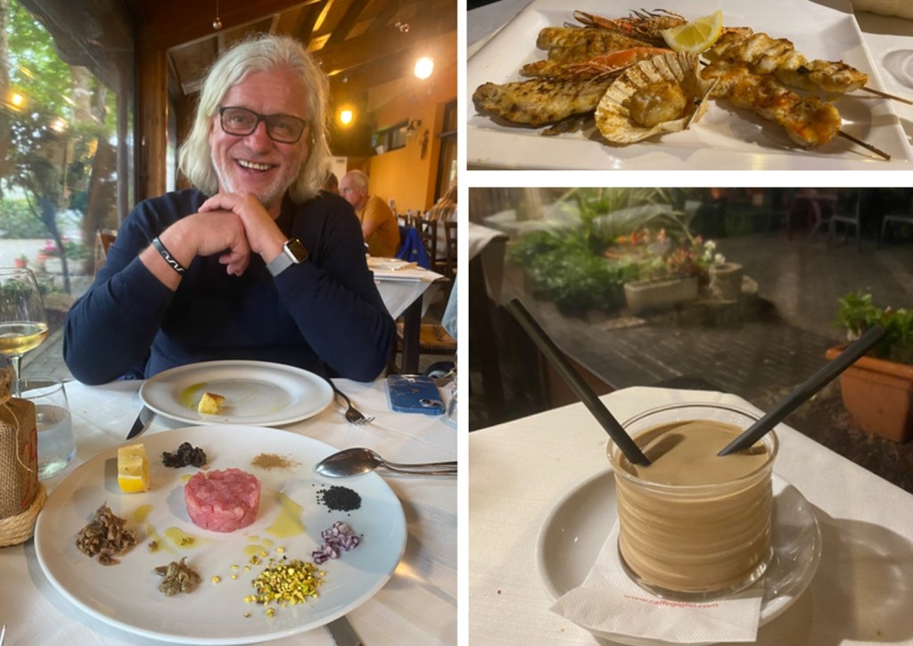 Wir hatten viel Spass beim gemeinsamen Essen im ‘Restaurant Garden’ auf dem Platz hier – und dieses Essen war das absolute Gegenstück zum gestrigen: ein schönes Restaurant, fröhliches Personal, toller Service und mein bisher allerbestes Essen in Italien !
