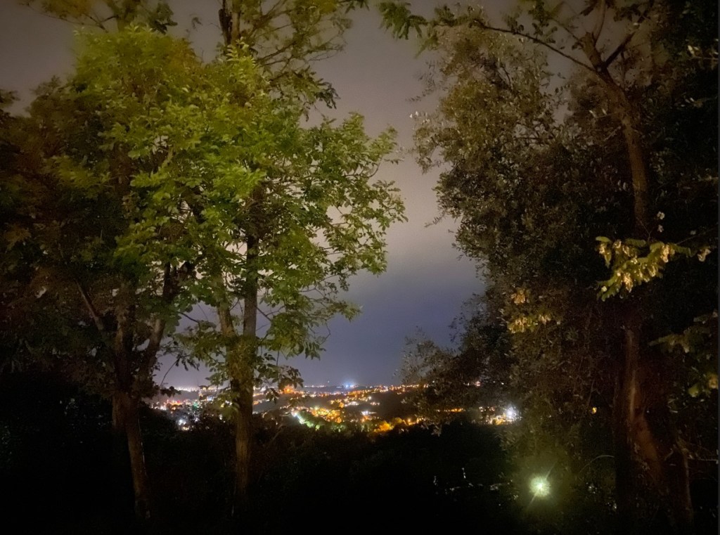 Nächtliche Aussicht von meinem Platz im Camping Centro Vacanze San Marino auf einen Vorort hinunter – herrlich !