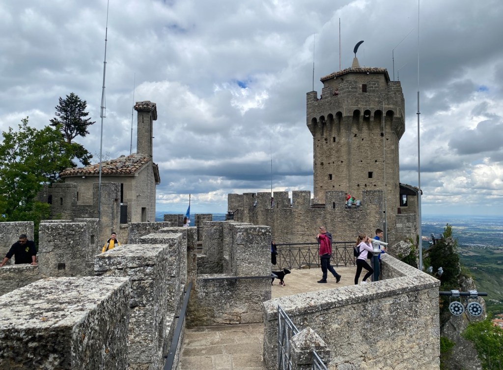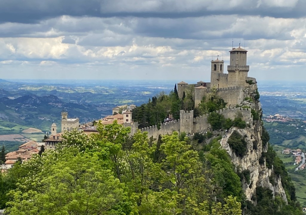 San Marinos Hauptattraktion sind definitiv die drei Wehrtürme Guaita, Cesta und Montale auf dem Bergkamm. Sie spielen stilisiert auch die Hauptrolle im Landeswappen.
