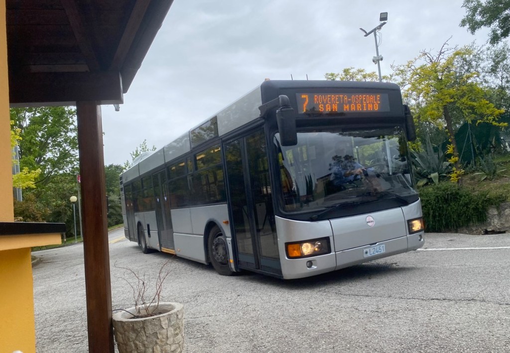 Am Freitag wurde es aber höchste Zeit für einen Besuch, denn wahrscheinlich wird auch San Marino von Besuchern überrannt am Wochenende. Der öffentliche Bus fährt hier gerade an der Reception vorbei zur Haltestelle, und wir Campingplatz-Touristen haben ihn problemlos gefüllt.