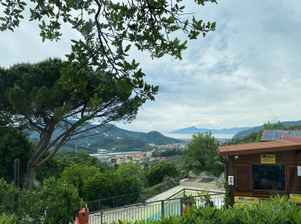 La Spezia. Hier war es gerade einmal 13.30h letzten Montag, und dieser nüchterne Stellplatz ist nicht nur bereits vollständig belegt – bei meinem Foto von der geschlossenen Barriere aus warteten bereits drei weitere Wohnmobile hinter mir darauf, die schlechte Nachricht zu erfahren. Hier hätte es mir eh nicht gefallen (saure Trauben ?! 😊); ich fuhr weitere 45 Minuten und landete in Sestri Levante (vor Genua) auf einem Bergkamm.