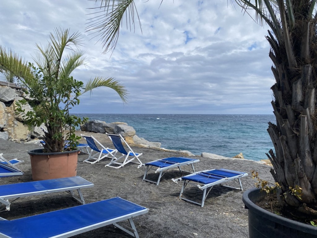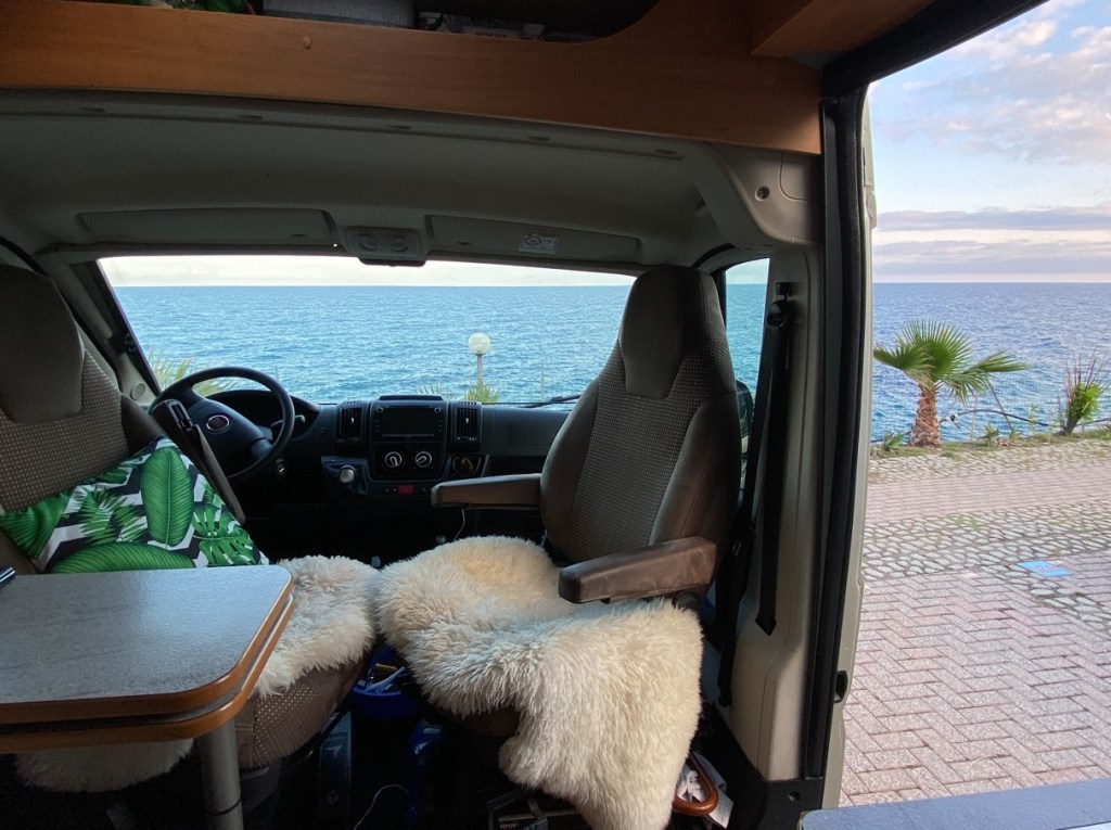 Es waren Sturm und Gewitter angesagt. Damit ich auch bei schlechtem Wetter etwas zu sehen hätte, wählte ich in San Remo einen teuren Platz mit Meerblick. Und da ist er ja, mein Meerblick. Ja, doch, der Einsatz hat sich gelohnt. 😊