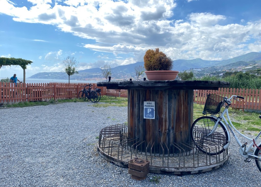 Im einfachen Bistro sul Mare La Vesca mit diesem originellen Veloständer habe ich sehr gut gegessen mit Blick aufs Meer und auf eine Segelregatta. Ferienstimmung !