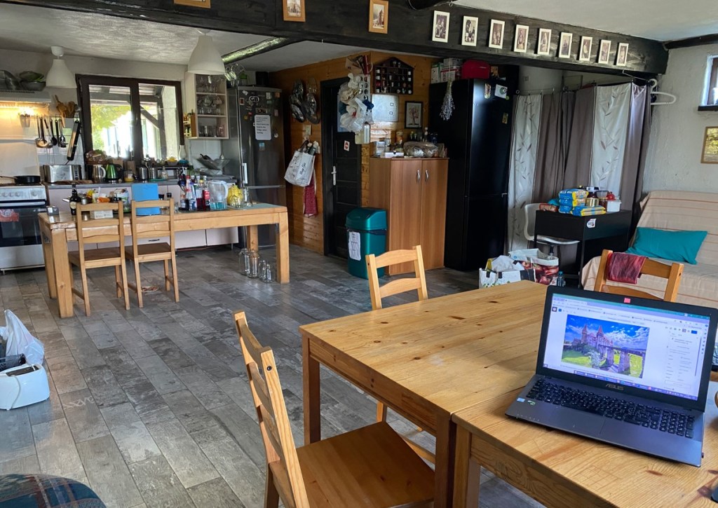 Der Chef ist Bauer und repariert Motorräder, seine Frau ist Psychotherapeutin, und in dieser Gemeinschaftsküche pflegen sie ihre Kontakte, machen Feste mit den Bikern und sind gerne mit Menschen zusammen.