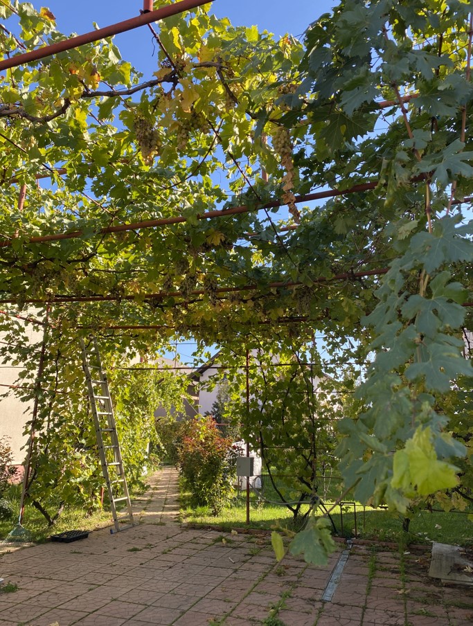 Oder die Reben in ganz vielen Vorgärten – wahrscheinlich vor allem für den Sommerschatten, aber mit Ernte-Bonus 😊