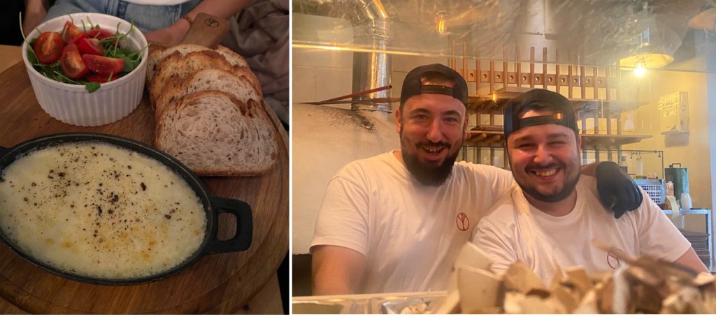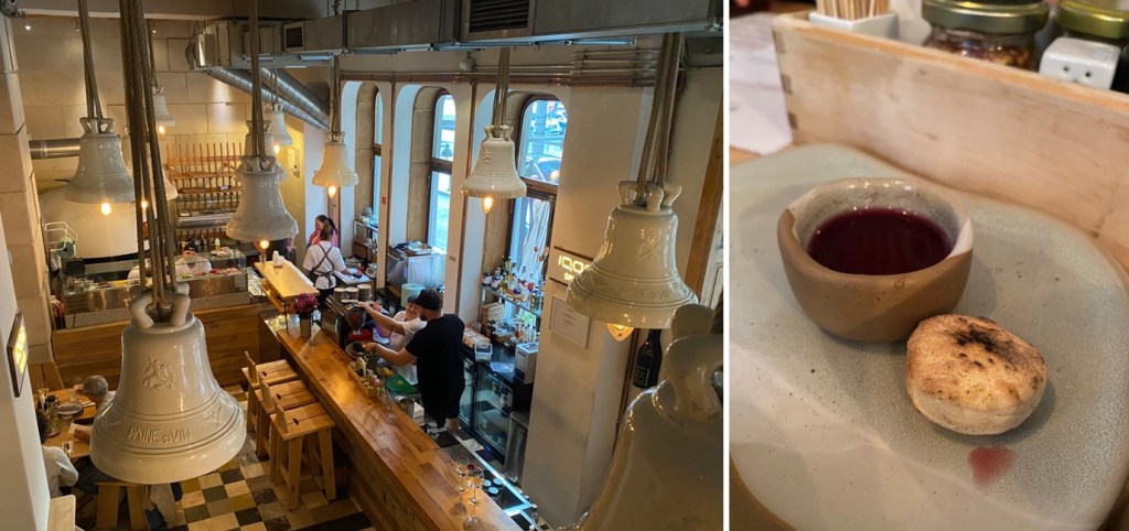 Im originellen Restaurant ‘Pâine și Vin’ (‘Brot und Wein’) tunkt man sich als erstes solche luftigen, warmen Pizzateig-Brötchen in den Wein – fein !