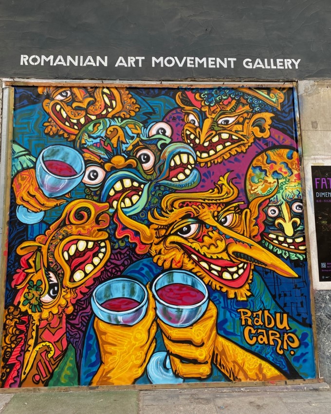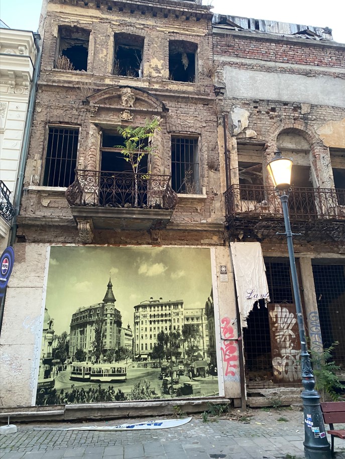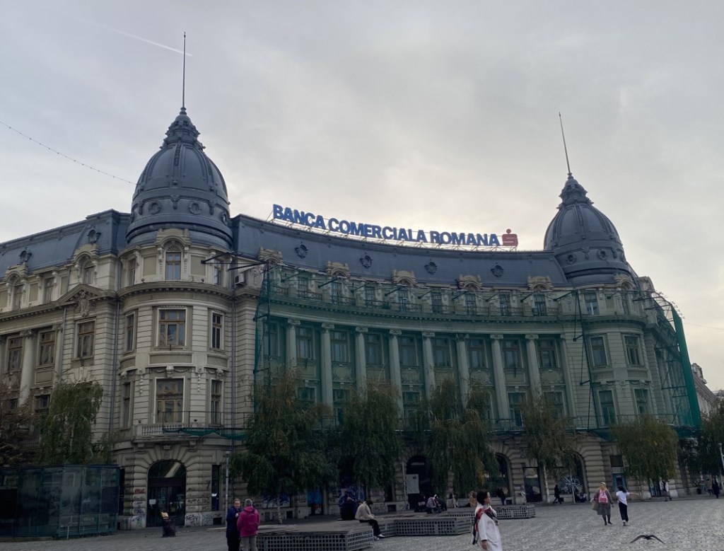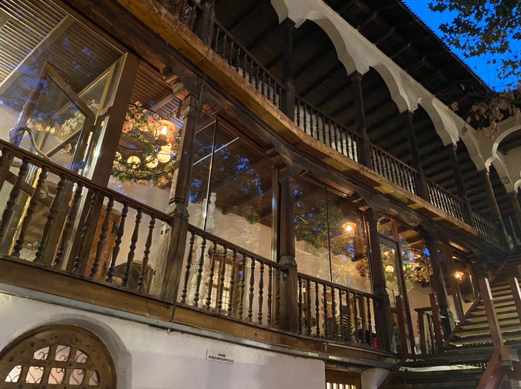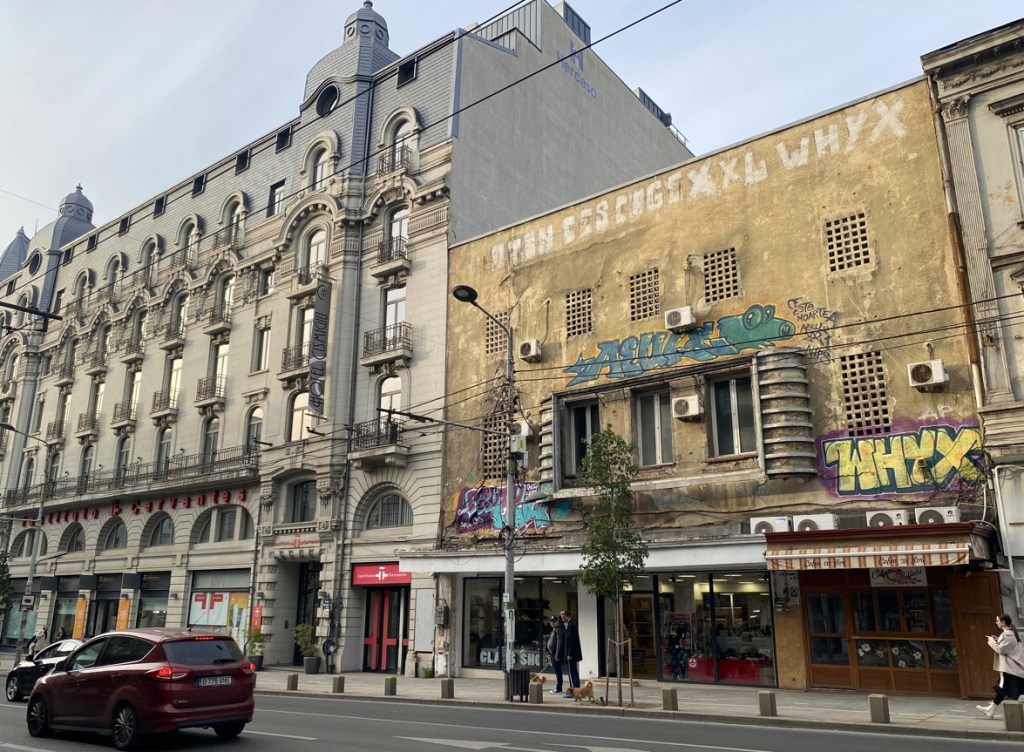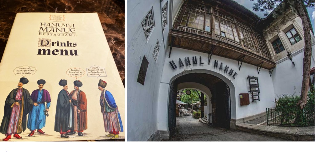 Dieses schöne Restaurant wurde 1805 erbaut, und beim Eingang rechts sieht man gut, warum man die Schrift direkt auf der Wand anbringen sollte: Es heisst nämlich ‘Hanul Manuc’. Theoretisch..