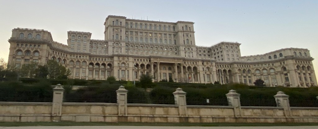 Es wurde einst von Ceausescu in Auftrag gegeben als ‘Haus des Volkes’ (welches dort gefälligst nichts zu suchen hatte). Dem Komplex mit mehr als 1000 Räumen musste ein ganzes Stadtviertel weichen.